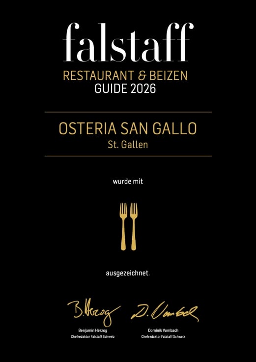 Die Osteria San Gallo wurde im neuen Falstaff Guide 2026 mit tollen 88 Punkten bewertet.